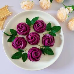 1. Add purple sweet potato powder to the flour, stir the sugar evenly, and add the yeast Stir evenly with warm water and let it sit for ten minutes.Pour the yeast into the flour and stir it into a fluffy form.Knead it into a dough and let it ferment for one to two hours