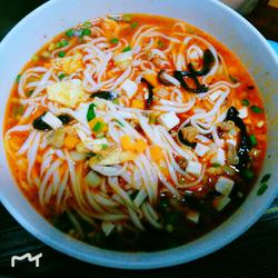 7.Picture of the finished product, add an appropriate amount of boiling water, vinegar, oily chili seeds, etc., and season according to your own taste, cook the noodles and pour them over
