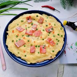 10. Finally, sprinkle with white sesame seeds and carrot particles for decoration, and take a picture of the finished product to complete a delicious and nutritious bacon and egg pancake.