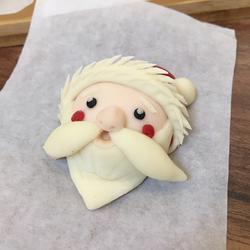 2.We wrap flesh-colored dough into a round shape to make its head and set aside3.Take a piece of white dough and press out a triangle to make its beard