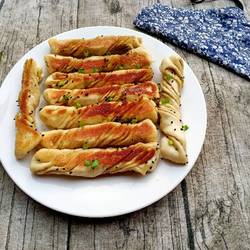 15. Brush the pan with a thin layer of vegetable oil, and spread the prepared small dough flat on it In the pan, leave enough distance between each dough stick.(The dough will become larger after fermentation)