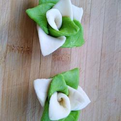 7.Take out half and arrange the pattern.Put it in a steamer at room temperature above 20 degrees, let it rise for two hours, steam it with cold water, steam it for fifteen minutes after the water boils, and simmer it for two minutes before taking it out of the pot.
