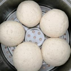 7. Grip it into a big ball, roll it into a round shape and put it aside.Let it rise for 20 minutes, then put it in a steamer and steam for 20 minutes and let it rest for 8 minutes