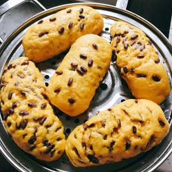 1. Steam two pumpkin segments, crush them into puree, put them into a basin, then add two pounds of flour, a little milk powder, 450 grams of warm water to dissolve six grams of yeast, and pour them into the basin together.Add more sugar to promote fermentation and sweetness, and knead it into a smooth dough.After two hours, it will be fermented with an obvious honeycomb shape as shown in the picture