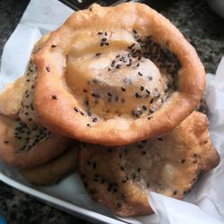 8. Stick sesame seeds on the upper and lower incisions of the small agent, then roll it out and put it in the pot Bring the oil to a boil and fry until both sides are golden, ready