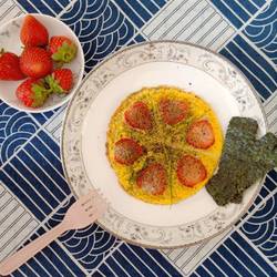 3. Slowly fry over low heat until set, place strawberries on top and sprinkle with chopped nori
