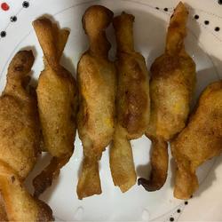 7.The oil temperature is 80% hot, Turn off the heat, lower your hands, and fry slowly over low heat until the surface bubbles and take out, crispy on the outside and tender on the inside