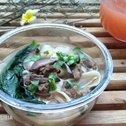 7. Add onions, mushrooms and shaved noodles, cook, add soy sauce, mature vinegar, pepper, Five spice powder to taste.