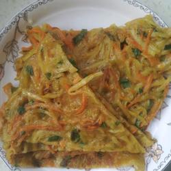 1.Shred potatoes and carrots, cut chives into small pieces, beat in two eggs, and add the accessories one by one;