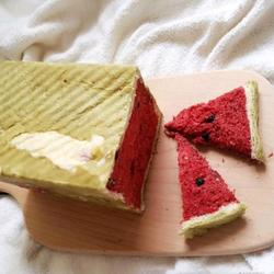 11.Take the red dough and roll it into a rectangle slightly shorter than the mold, use a 450g toast box)