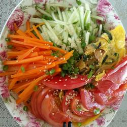 1.Prepare the raw materials, mince garlic and leeks, shred carrots and cucumbers, slice tomatoes and onions, and cut cabbage into sections