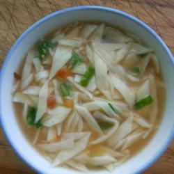 9.The water is boiling, below.Stir while lowering, and finally add chopped green onion.It's finished.