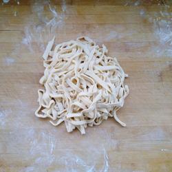 2.Add a little water and stir into dough if you want to braise it.The amount of water required for slicing noodles is enough.If you like them softer, add a little more water.But not too much.