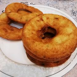 4.Turn over the dough spoon to take off the dough, fry until both sides are golden brown, remove and drain the oil