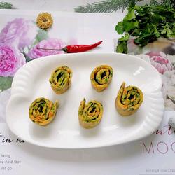12. Take a picture of the finished product and make the delicacies of spring into a snack.The spinach egg roll is both eye-catching and delicious.