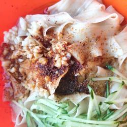 | Noodles ( 1 handful ) | Cucumber shreds ( Appropriate amount ) |