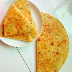 2.Shred the potatoes, dice the sausage and green onions, and beat the eggs