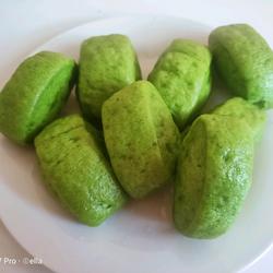 1.Spinach water for one minute, then Pick it up, put it in a cup, add water, and make a paste.Friends who have a wall breaker use a wall breaker.When it becomes smooth, add yeast and sugar and wait 2 minutes.