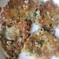 8. Fry over low heat until one side is golden brown.Use a knife to cut it into 4 pieces.You can adjust the specific number yourself.Then turn over and continue frying until golden brown, then remove from the pan