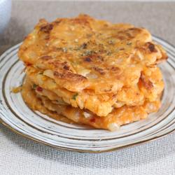 The kimchi pancakes can be fried for a while and they will be very crispy and delicious.