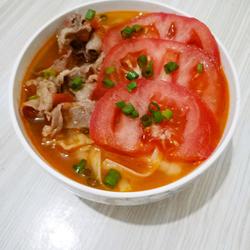 14.Noodles After cooking, put it into a bowl and add an appropriate amount of freshly cooked soup, beef slices, tomato slices, and chopped green onions according to your preference.