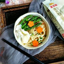13. After the water in the pot is boiling, add the noodles and stir them gently with chopsticks to prevent them from sticking.Be careful not to break the poached eggs.After the water boils, cook for another two minutes.