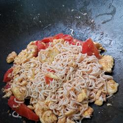 5.Add the cooked noodles, stir-fry with tomatoes and eggs, and enjoy.