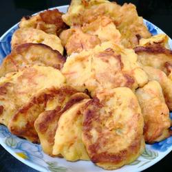 3. Grease the pan with oil, put the potatoes into the pan, press them into cakes with a spoon, and fry Until both sides are golden.