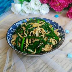 5. Heat up the rapeseed oil, add the garlic, sauté until fragrant, then add the tofu skin and stir-fry for a few minutes