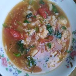 1. Stir a little flour into granular form with water.Beginners should pay attention to pouring one drop at a time and stirring twice to stir the flour.If too much flour is poured in at one time, it will stick together and become a lump instead of a lump..So don’t rush during this process.Wash and cut tomatoes, coriander, and rapeseed and set aside.Add a little starch to the eggs and mix well and set aside.Dissolve a spoonful of starch with a little water and set aside.