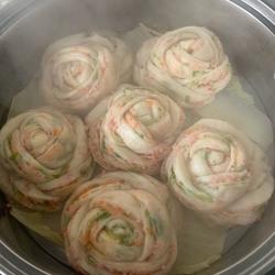 5.Sprinkle with chopped green onion, diced carrots, salt, and diced ham
