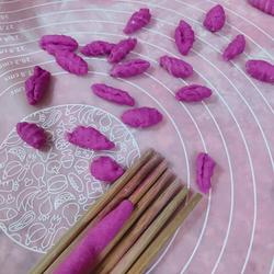 5.The first shape: 7 chopsticks side by side, Take a small piece of dough and roll it into a long strip, cut it on chopsticks and press it into shape