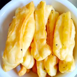 3. Oil Heat 70% of the heat, deep-fry the fried dough sticks, flip with chopsticks until golden.