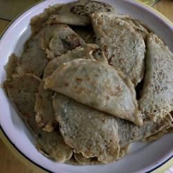 16.Start from one side and make it into a semicircle.Use a spatula to press the sides tightly to prevent the filling from coming out.Grill both sides for half a minute