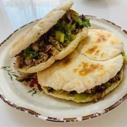 8. Stir the pepper, coriander and meat into the cut cake, and then pour in With a little bit of soup, a roujiamo with crispy skin, soft meat and full-flavored sauce is ready!
