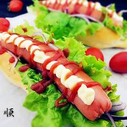 15.Place in the middle Grilled sausage topped with tomato sauce and salad dressing...I feel so full after eating this.