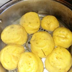 2. Steamed pumpkin, mash it with a spoon, add appropriate amount of sugar, (you can add according to your own taste) yeast 4 grams, stir evenly,