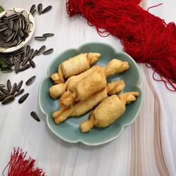 8. Add more oil to the pot and when it is 70% hot, add Put the prepared candy ham sausage into the pot and fry until golden brown and take it out