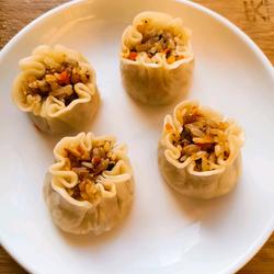 3.Put the filling into the dumpling skin and wrap it tightly, tighten it, brush the steamer with a layer of oil, and steam over medium heat for about 13 minutes (if you want it to be softer and glutinous, you can extend the time appropriately, and pay attention to a certain distance)