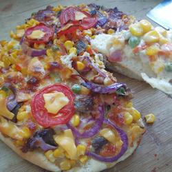 20.In the order of tomato sauce, mozzarella cheese, beef cubes, assorted vegetables, bacon, onions, mozzarella cheese, tomatoes, and Baghdad cheese slices, in order Placement