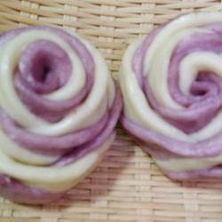 1. Steam the purple sweet potato first, let it cool, add yeast and mix it into the flour, slowly Add water slowly, do the same with white flour, knead two doughs, knead well and wait for fermentation.