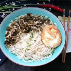 8. Take a picture of the finished product, and a delicious bowl of pickled cabbage and shredded pork noodles is completed.