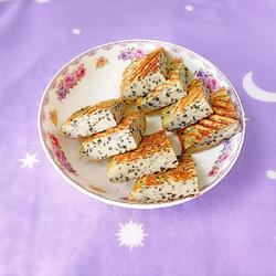 9.In a double-sided frying pan Pour 2 grams of black sesame oil