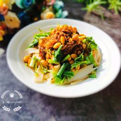 10. Put the beef and soybean sauce.For the specific method, refer to the recipe "Beef Stewed with Soybeans" on my homepage.Add the chopped green onion and coriander, stir well and serve