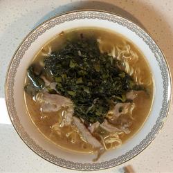 4.Put in a bowl and top with the pickled vegetables cooked by my mother-in-law