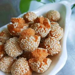 11.When the oil in the pot is 50% hot, add the dough balls.When frying, fry them over low heat and slowly.Do not turn the dough balls.Do not add too many dough balls at one time