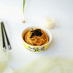 8.Put the noodles into a large bowl, pour the boiled scallion oil and soy sauce, and mix well.