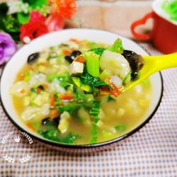 11. Follow the edge of the bowl, use chopsticks or non-stick to stroke it down and roll it.In vegetable soup.