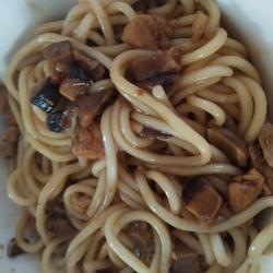 7.Pour the fried mushroom sauce on top and eat the fried mushroom noodles