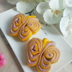 1.Steam the pumpkin and purple sweet potato, then paste them into a paste and set aside